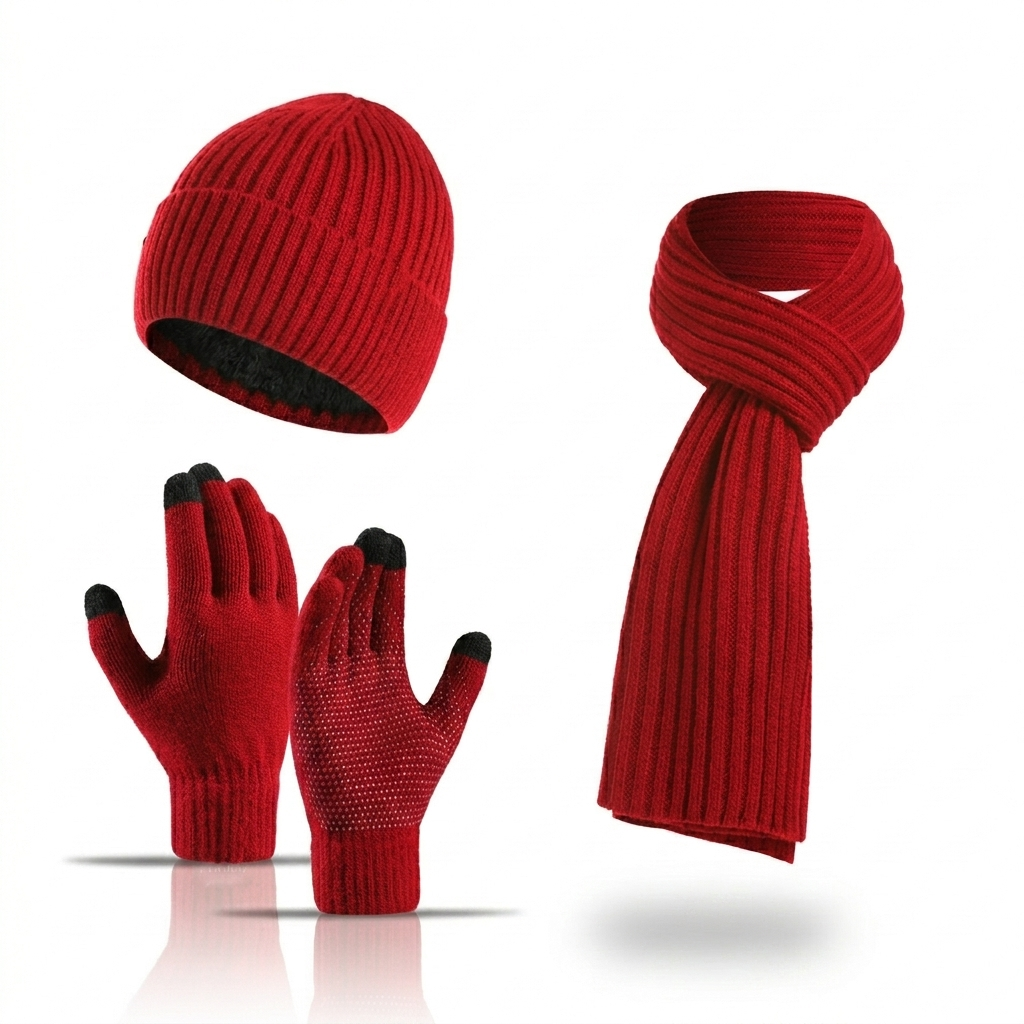 Conquer the cold with this premium 3-piece winter accessories set. Crafted with a dual-layer thermal knit and soft fleece lining, this set includes a stylish beanie, a thick ribbed scarf, and anti-slip touchscreen gloves. Designed for both men and women, it offers maximum warmth and comfort for all outdoor winter activities.